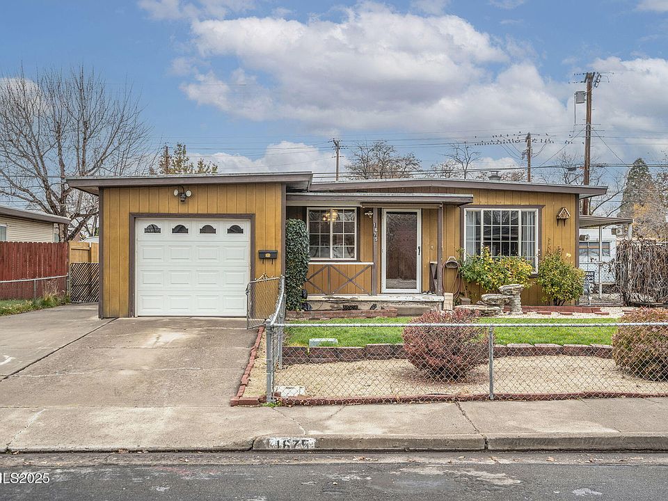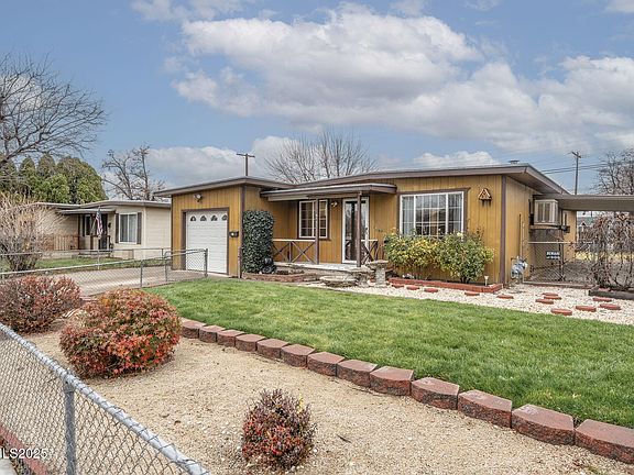 Fantastic starter home or investment opportunity with a touch of nostalgic charm! The inviting floorplan offers an open living room with picture window, separate dining area, and a cozy kitchen brimming with potential! This home includes three generous bedrooms and 2 full baths, including a primary suite with a spacious bathroom featuring an oversized shower and skylight. Two water heaters ensure you'll never run out of hot water! The laundry room doubles as a mudroom with access to both the garage and backyard. There is so much parking here! An extra-long driveway next to the home ensures plenty of parking for all, and additional access for extra vehicles, toys, or RV parking is available through the rear gate off Kietzke. On the opposite side of the home, an aluminum awning creates an ideal space for entertaining or covered parking. In the summer, beautiful Virginia Creeper vines bloom along the rear fence, providing privacy and noise reduction. The expansive yard is fully landscaped with grass, shrubbery, patio space, and xeriscape. Additional highlights include brand-new carpet throughout, new wood-look linoleum in the kitchen and laundry area, central gas heat, newer windows in most rooms, new garage door, and automatic sprinklers. Located in an up-and-coming neighborhood near the Wells Avenue District, close to shopping, schools, and recreation. Don't miss your chance to own for under 400k!