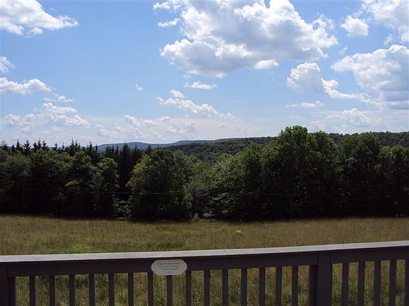 Enjoy BIG Delaware County Catskill Mountain sunsets from the deck of this 2005 ranch-style home. Located on over thirty acres in Bovina, the home offers spectacular south-west views. Boasting three bedrooms and two baths, this home offers easy maintenance and comfort. Following an open floor plan, the entry area flows to living room to kitchen to dining area and through sliding doors to a large deck. Three bedrooms, including a master suite with its own bath, allow for some private space. The quality of the craftsmanship is evident in the hardwood floors, cultured stone wood-burning fireplace, and cabinetry. The full walk-out basement--built using the Superior Wall system--could easily be finished to provide more living space. The 33 acres are a mix of open meadows and hardwood framed by stone walls. Located on a town maintained road, the home is only minutes to the Bovina hamlet center, Delhi, or Andes. A two-car garage and a large storage shed complete this attractive offerin