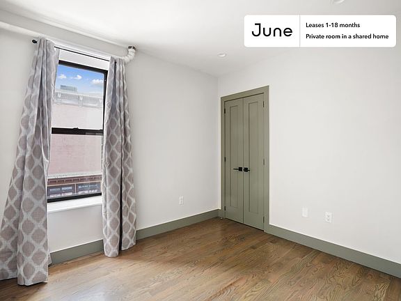 This Queen room in East Harlem is available on a 12 month lease or a flexible short term (31 to 364 days) lease. You pick your custom start and end date. Monthly rent rate is determined by furnishing preference, move-in date and move-out date. Speak to a June representative for recommendations on the best stay duration for the lowest rate.