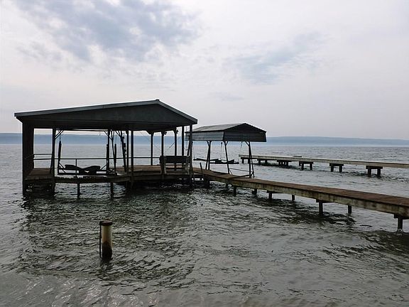 UNDER ASSESSED VALUE! This YEAR ROUND home on nearly an acre of Seneca Lake's West side is ready to go! New roof in 2014. New submersible water pump 8/14, updated waterfront stairs 3\16! Enjoy living at the lake with your own winter boat storage & permanent covered dock. 1st floor master suite with a private deck, glass-paned French doors, large family room with a lake view, loft bedroom & 2 car attached garage. A detached 2 car garage makes for great boat or extra vehicle storage. Newly renovated steps to the water and your permanent covered dock make this property hard to beat.