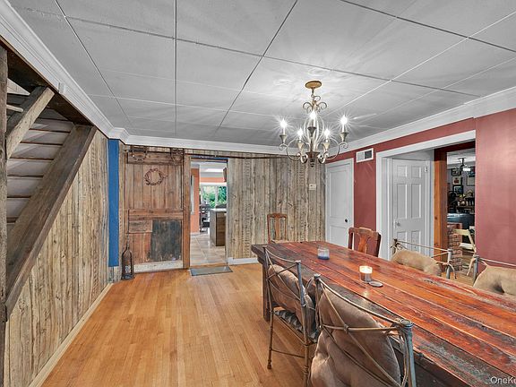 Discover this charming home with endless potential in the heart of Pleasant Valley, Dutchess County. This beautiful colonial-style residence offers timeless character, natural serenity, and a true indoor-outdoor lifestyle. With direct access to a tranquil creek from your backyard, this over 2,900 square feet home is perfect for unwinding in nature, listening to the soothing sounds of the water, or enjoying a peaceful evening by the fire pit under the stars. This light-filled 3-bedroom, 2-bath home features a flexible layout with a separate area ideal for guests. The open-concept design allows the main living spaces to flow seamlessly into one another, creating an inviting, airy feel that’s ideal for both everyday comfort and effortless entertaining. Just off the living room is a sunlit room, perfect for a home office or creative space. Hardwood floors, oversized windows, two wood-burning fireplaces, and one pellet stove add warmth and charm throughout. The living room offers serene views of the private backyard oasis, while the kitchen shines with a skylight window and stainless steel appliances.