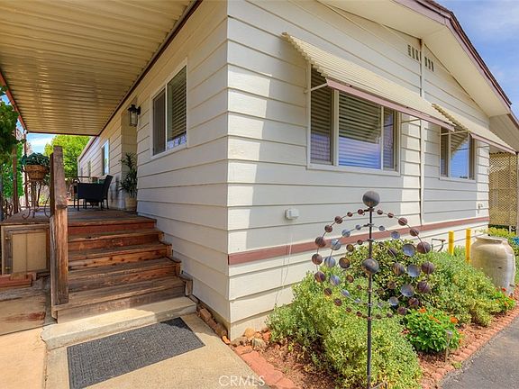 Discover the charm of Pleasant Valley Mobile Estates—an inviting community ideally located just a short stroll from the Racquet Club, Wildwood, and Bidwell Park, and conveniently close to local restaurants and shopping. This beautifully updated home offers 1,440 square feet of inviting living space with a well-designed floor plan that’s perfect for comfort and functionality. It features 2 bedrooms, 2 bathrooms, and two spacious living areas—ideal for both relaxing and entertaining. The tastefully remodeled kitchen showcases open shelving, butcher block countertops, a central island, a new cooktop, built-in oven, luxury vinyl plank flooring, and crisp white cabinetry. Flowing seamlessly into the second living area, the kitchen is conveniently located next to a generously sized laundry room that could easily serve as a home office or flex space. The outdoor living spaces of this home are just as impressive. A charming front porch welcomes you in, setting the tone for the warmth and character found. Just off the master bedroom, a beautiful composite deck provides the perfect place to relax and unwind. Enjoy well-maintained garden beds and two storage sheds for all your tools and extra belongings. An additional private sitting area is tucked behind the carport, complete with fencing for added privacy—ideal for quiet mornings or evening gatherings.