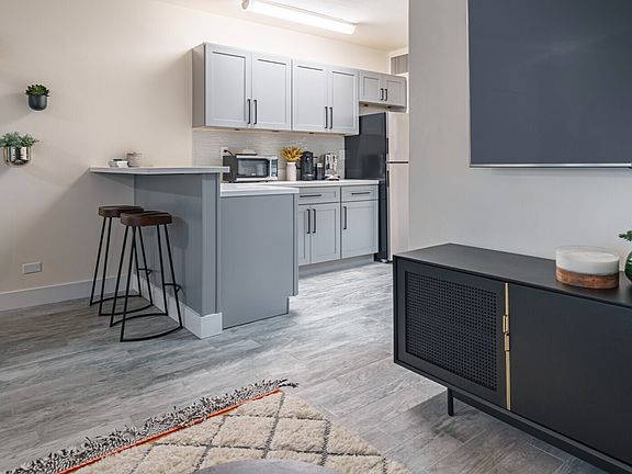Apartment Highlight: Featuring stainless steel appliances, an extra-large kitchen, sleek quartz countertops, a convenient breakfast bar, energy-efficient LED lighting throughout, and wood grain flooring.
