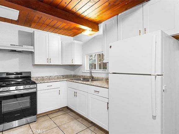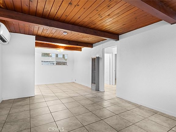Charming 2-bedroom, 1-bath home offering 859 sq ft of living space on a spacious 6,000 sq ft lot. Ideally located near freeways, schools, and shopping, this property provides both convenience and comfort. The inviting front yard features a nice driveway for ample parking. Step inside to an open layout complemented by a newer mini split system for cooling and a wall heater for warmth. The kitchen boasts a gas range, refrigerator, and plenty of cabinet space for all your storage needs. The home features tile flooring throughout—no carpet anywhere—making maintenance a breeze. The primary bedroom continues the tile flooring for a cohesive look. Enjoy the character of the wooden ceilings and the unique appeal of a flat roof. The backyard offers a generous space, an open canvas ready for your personal touch or outdoor living ideas. This home is perfect for first-time buyers, investors, or anyone looking for a well-located property with great potential. Don’t miss out on this opportunity!