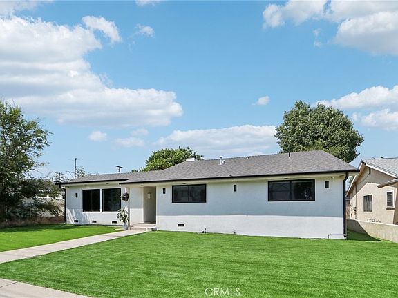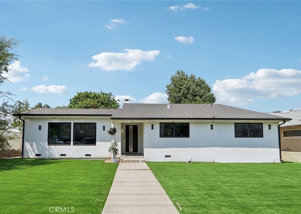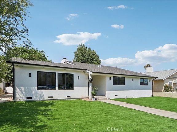 Beautifully remodeled home located in Granada Hills. Seller spent thousands of $$$’s on this Stunner!! Situated on a spacious 7,800 sqft lot, this 1,780 sqft 3 bed, 2-bath home offers impressive curb appeal with a modern black-and-white exterior, a stylish front door, and new artificial grass that stays green year-round. Step inside to find luxurious flooring throughout, a formal dining area with a custom accent wall, sleek fireplace, and designer raised ceilings. The open-concept chef’s kitchen is equipped with stainless steel appliances and a central island that opens seamlessly to the spacious family room with built-in speakers and a modern fireplace—perfect for entertaining. The primary suite includes a beautifully remodeled en-suite bathroom with dual vanity and walk-in shower, while two additional bedrooms share an updated full bath. Outside, enjoy a covered patio with recessed lighting and built-in speakers, a large backyard for gatherings, and a detached garage with alley access—ideal for an ADU (buyer to verify). There’s an extra storage structure for added convenience. Located near shopping centers with easy freeway access, this turnkey home truly has it all. Don’t miss your chance to make it yours!
