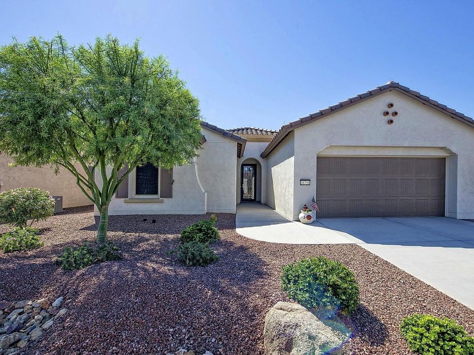 Gorgeous Baja model is way better than new. Two bedrooms + den. Former spec home is IMMACULATE inside and out. Upgraded fixtures, plantation shutters and designer touches are evident throughout. Kitchen boasts granite counter tops, upgraded stainless appliances, maple cabinets and stylish backsplash. Garage extended by four feet, and features built-in storage cabinets and spotless epoxy flooring. Back yard is a private, fully enclosed oasis with extended pergola and artificial turf for your four-legged companion. Think about it: a gorgeous home, true resort-style living, perfect weather, and a gated community brimming with amazing active-adult amenities. You can't afford to let this opportunity pass you by!