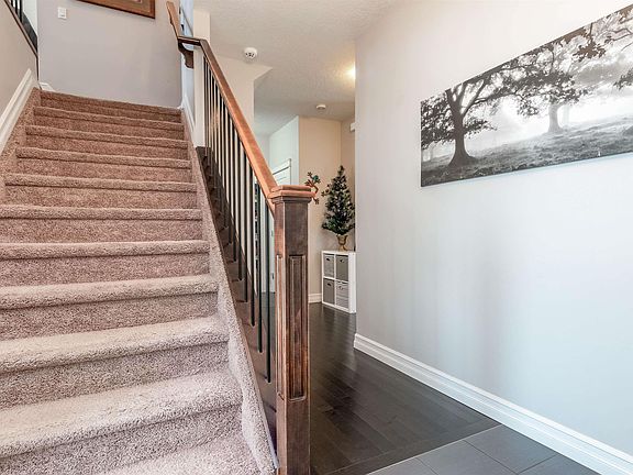Situated on a HUGE PIE LOT is this GORGEOUS family home! Fronting the pond and trees in one of north Edmonton's most desirable communities! Open concept design offering nearly 2400 sq ft plus a FULLY FINISHED basement! Loaded with natural light and featuring a stunning kitchen with an abundance of custom cabinetry, stainless steel appliances, walk-through pantry and beautiful countertops. Large windows, generous dining area and a spacious living room with hardwood floors & attractive gas fireplace. Main floor flex room/office and powder room. Upstairs is a big Bonus Room, 3 bedrooms, laundry room and a 4 piece bathroom. Vaulted ceilings in the Primary Bedroom, walk-in closet and a LUXURIOUS "SPA-LIKE" ENSUITE! The basement boasts a massive family room, wet bar, 4th bedroom, 4 piece bathroom, utility room & storage space. BEAUTIFUL BACKYARD! Two-tiered deck and stamped concrete patio. Central AC, hot water on demand, and a HEATED GARAGE! Outstanding value!! Visit REALTOR® website for more information.