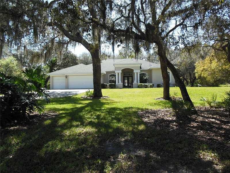 Under contract / taking backups ONE ACRE -LUSH!! Looking for the Exceptional? Look no further. Pride of ownership is evident throughout this well-maintained home. Lush park-like setting features ONE ACRE lot surrounded by sweeping Oaks, citrus trees, mature landscaping, and very private. This home has it all! Spacious 4/3/3 Plus Den features tile floors, brazilian cherry hardwood floors in den and master bedroom. Formal dining and living room, crown moulding, Granite counter tops in kitchen, raised paneled cabinetry. All appliances included. Walk-in pantry. Beautiful family room with wood-burning fireplace. Desirable 3-way split bedroom floor plan, ideal as in-law or guest suite with private bath. Inviting in-ground pool (14 x 28) which is accessible from practically every room. You will enjoy entertaining, a huge pool deck area and plenty of covered area. Just outside the screened lanai is an extended patio, and a beautiful back yard. Gracious Master Bedroom, light and bright. His and Her closets, dual sinks in master bathroom with corian counter tops, garden tub, and separate walk-in shower. New HVAC 2012, Water softener 2012, new pool pump 2011. Irrigation on well (250' deep) Exterior Painted 2010. No CDD fees. Reasonable HOA fees paid $270. quarterly cover gated entrances, common areas, cable, trash pickup twice weekly, street lighting, community pool, tennis. Conveniently located 1/2 mile from Suncoast Parkway, easy commute to Tampa. Seller will entertain offers! NO FLOOD INSURANCE REQUIRED.