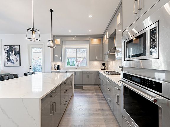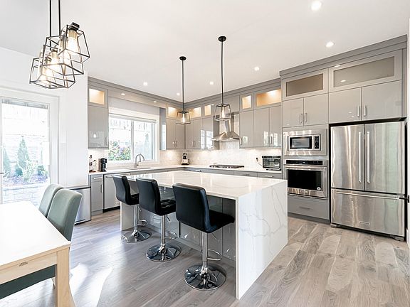 Like brand new, custom built home located in 1 of the most desirable neighbourhoods in South Surrey. Features incl. panoramic view from top floor, air-conditioning, open concept plan with high ceiling. Main floor has office, dining room, great room and a chef's kitchen with top of the line appliances. Upstairs has 3 bedrooms all with ensuites bathroom and large laundry room. Downstairs incl. a guest bedroom plus full bathroom for your own use and a 1 bedroom LEGAL suite as a mortgage helper. Double side-by-side EV ready garage. 4 additional parking spaces in front. Just minutes' drive away from the top-ranking SOUTHRIDGE SCHOOL, brand new public school Ta-talu Elementary, Grandview Heights Aquatic Centre, shopping mall which has almost everything you need. 3 minutes access to Highway 99.