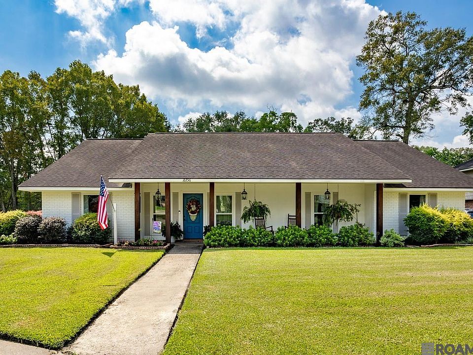 Welcome to this immaculate 4 BR, 2 1/2 bath fully updated home located in the coveted Shenandoah S/D in City of St. George. Near Shenandoah Elementary School and St. Michael’s High School and conveniently located to shopping, dining and a BREC park, this stunning ranch showcases painted brick showcasing a big front porch with stained concrete floor and a spacious covered back patio overlooking the beautifully landscaped yard which is a Yard of the Month winner. Home is fully updated with neutral paint and attractive as-well-as functional floor plan with luxury vinyl plank and tile. Beautiful kitchen has ample counter space featuring 3 mil granite, classic subway tile backsplash, high-end cabinets with soft close doors and soft close drawers in base cabinets, fire clay porcelain farm sink, garbage disposal, stainless steel appliances, two pantries. Semi-open concept for kitchen, breakfast room, formal dining room and large main den featuring vaulted ceiling with beams. Home has a dedicated office, laundry room with sink and an EXTRA 19 x 24 den. This home is equipped with a Ring doorbell, double-paned, energy-efficient windows, six smoke alarms, Carbon monoxide detector, four new motion-sensor exterior flood lights and Sentricon Termite System transferable to new owner. Home boasts of large bedrooms and closets. Primary bedroom has an attractive tray ceiling, en-suite master bath, 2 walk-in closets with wood shelving. Master bathroom has 3 mil granite with custom high-end cabinets with soft close doors and soft close drawers in base cabinets. Half bath has designer wallpaper with quartz counter and vessel sink. Fully fenced back yard and storage shed for lawn equipment. Home has been meticulously maintained and move-in ready! This house which combines entertainment value, comfort, space and prime location can be yours!