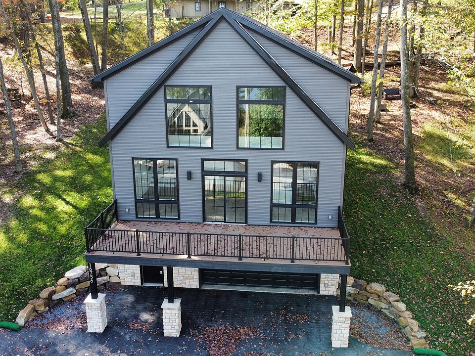 elements. Upstairs, a spacious loft overlooks the main living area, adding versatility as an office, reading nook, or additional family space. The lower level is fully finished, offering even more room for relaxation, recreation, or hosting overnight guests. Every detail has been carefully considered to maximize comfort & functionality across all three levels. Outdoor living is just as impressive, with a large deck that provides the perfect backdrop for morning coffee, evening sunsets, and year-round enjoyment of the surrounding natural beauty. A 2-car garage adds practicality, while the home's elevated placement ensures both privacy & panoramic views of the water. This property isn't just a home, it's a lifestyle. With modern design, timeless finishes, & the serenity of lakeview living, it offers the ideal combination of elegance and everyday comfort.