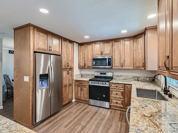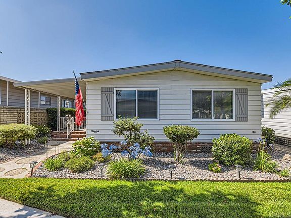 This beautiful manufactured home is in the very desirable 55+ Lake Pleasant Park, Yorba Linda. Upon entering, a beautiful water feature in the middle of a lake will immediately catch your eye! This is it! The park you've been looking for. Serenity is the feeling you may experience while you drive around and see the green belts, walking paths, sidewalks, and beautifully maintained landscaping. This completely re-done home features brand new flooring, new granite counter tops, new cabinetry, new baseboards, new bathroom accommodations, crown molding and ALL NEW APPLIANCES. New roof, new showers, new air conditioning and footings. The large covered patio is just perfect for guests and small animals. There is a gated side yard just perfect for a dog run. The tangerine tree is a pleasant addition to the front landscaping and produces enough fruit to delight and share with friendly passersby. Beautiful tree lined green belts invite you to take a morning stroll and enjoy the surrounding landscape. The owner LOVES her home and has decided to relocate! This home will not last long! Base rent is $1,592.53. Monthly billing will include all utilities except for cable and varies with usage. Buyer must get park approval.