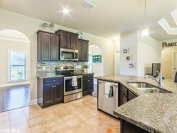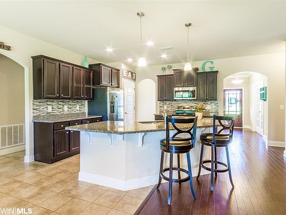 Turn the key and come HOME to this stunning southern charmer in Shadyfield Estates! Built in 2016, this move-in ready home boasts 4 bedrooms, 2.5 baths, a 2 car garage, and is in excellent condition. Upgrades include hardwood flooring, archways and tray ceilings. The large kitchen is equipped with stainless steel appliances, granite, custom tile backsplash, and a HUGE, built-in island, perfect for prepping meals. There is a breakfast area in the kitchen and a separate formal dining area that provides flexibility and plenty of space for tables and chairs! This truly is an entertainers home! Just off the main entrance is a bonus area, with french doors, that is perfect for a home office or study. The floor-plan of this home has a great flow and is a split floor-plan. When you step out the back door and you will find a screened in porch with a wide, custom patio and a large fenced backyard with plenty of room for a fire pit, swing set, and those fur babies we love! The community pond is next door so no one to the immediate left of the home and woods lines the backyard. Centrally located off of County Road 32 this is the perfect location as it is close to the Baldwin/Beach Express and commuting to Mobile or Pensacola is convenient. Take a quick trip to the all new OWA theme park that has plenty of restaurants and shopping while Gulf Shores and Orange Beach are just minutes away. This home is Gold Fortified. This property is one that won't disappoint! Tenant responsible for all utilities. All adults 19 and older must apply.