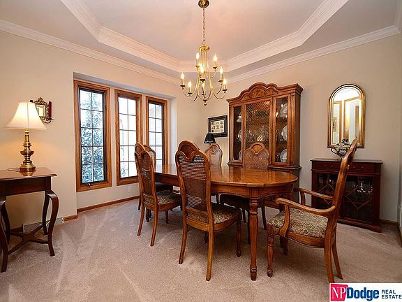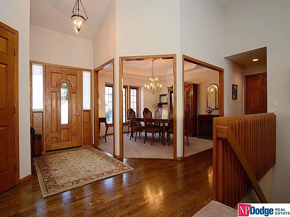 Spectacular Bay shores Ranch sits on a half-acre lot at the end of a cul-de-sac. The kitchen is stunning with hard wood floors, hard surfaces countertops and many windows that overlook the private back yard. Open Living room with vaulted ceilings, gas fireplace, has large windows overlooking the private fenced yard. Three large bedrooms. The primary bedroom has walk in closets, full bath with separate showers and jacuzzi tub. Home has a separate dining room. Finished basement with large bar, separate office area and room for exercise area with a 3/4 bathroom and lots of storage area. Main floor laundry room has a large drop zone area. Garage has additional area for storage. Walk to Lake Zorinsky recreational area then relax in the shaded Back yard that has is fence, has a lazy river and is extensively landscaped. Professional pictures to be added on Thursday.