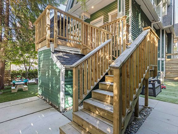 Beautifully updated 2 bed & den duplex just off The Drive with private fenced yard, nestled among mature cedars. Completely renovated main floor has spacious kitchen with eat-in island overlooking living room with cozy fireplace, and dining room. Upstairs has 2 bedrooms, each with en-suite bathroom. Downstairs, also completely redone, features a large laundry/mudroom with separate entrance, big den/flex room and 4pc bathroom. Air conditioning and Nest smart home system are just a couple of the modern comforts added to this home. Outside, this corner lot has a big private, fenced yard with 2 sheds for plenty of storage and driveway for off-street parking. Just one block from the heart of Commercial Drive, the best the city has to offer is at your doorstep! Open Sunday 1-2:30pm.