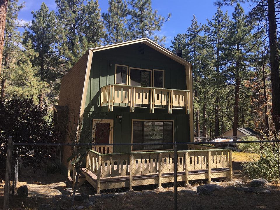 Terrific Gambrel on a great corner lot. 2 Bdr.2 Full Baths. 1134 Sq. Ft on a 5450 Sq.Ft Lot. Built in 1991. Ground floor has Kitchen,Living room W/ Fireplace and open beam ceilings.Dining area. Kitchen open to Living and dining area.Full bath and separate laundry closet.Upstairs are 2 good sized bedrooms. one with a nice setting deck, also a full bath. Home has central heat and A/C. Also fire sprinklers.There are good sized decks on the front and back for enjoying the outdoor atmosphere.Lot is fully fenced W/ 2 gates and 2 small sheds. Refrigerator and stack washer/dryer are included. Walking distance to town and close to Highway 2 for easy access.