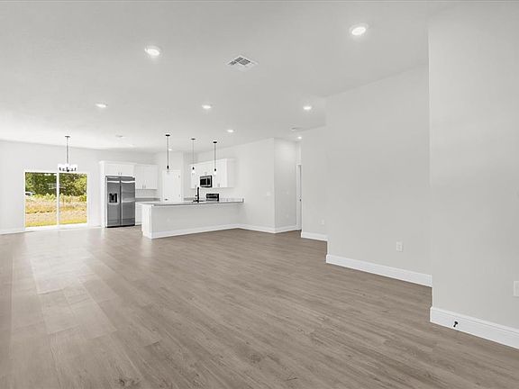 Don’t miss this incredible opportunity! Welcome to this stunning brand-new construction offering 1,865 square feet of thoughtfully designed living space. This modern 4-bedroom, 3-bathroom home features an open-concept layout filled with natural light, luxury vinyl flooring throughout, and high-end finishes that elevate every corner of the interior. The contemporary kitchen is a true highlight, equipped with quartz countertops, stainless steel appliances, sleek white cabinetry, and stylish pendant lighting above the expansive island – perfect for both everyday living and entertaining. The spacious primary suite offers a private retreat, complete with two walk-in closets and a spa-inspired bathroom featuring a freestanding soaking tub, a separate tiled shower with matte black fixtures, and a double vanity with quartz countertops. The additional bedrooms are generously sized, each with access to beautifully designed full bathrooms, providing comfort and privacy for family members or guests. The laundry room includes hookups for a utility sink and offers plenty of space for storage and convenience. Step outside through the sliding glass doors to a large backyard, offering ample space for entertaining, relaxing, or future customizations. Situated on a quiet street, this home delivers privacy, comfort, and modern elegance in one complete package. With no HOA restrictions, a two-car garage, and a long driveway, this property is ready for you to move in and enjoy all the benefits of new construction in a growing area.