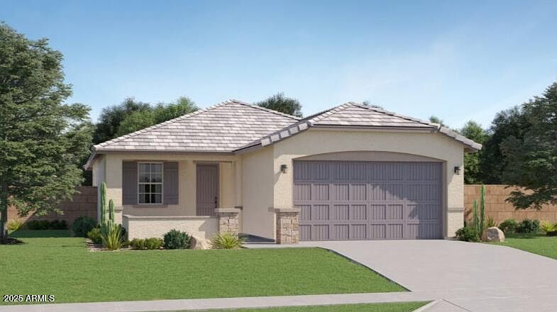 Seller will provide a credit towards a rate buydown and closing costs with preferred lender. Ask us how to save thousands over the life of your loan. This home is located in Asante Artisan, a brand-new master-planned community in Surprise, AZ. Surrounded by scenic mountain views, this community offers convenient access to local shopping, dining, and recreational activities. Enjoy resort-style amenities including a clubhouse, swimming pool, lap pool, fitness center, pickleball courts, and more! Complete with 17x17 tile flooring, stunning quartz countertops, and stylish white cabinetry, this home is designed for comfort and function. Photos are of model home. All stainless steel kitchen appliances pictured are included. A copy of the public report is available on the ADRE's website.