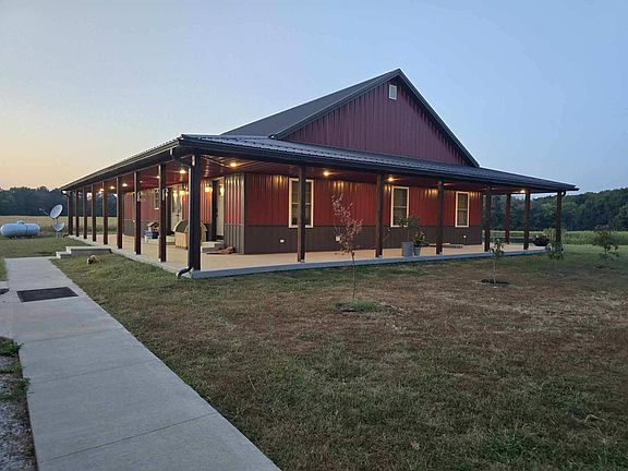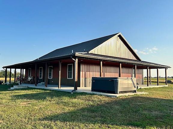 New 40' x 50' Ranch Style Home W/ Wrap Around Porch On 5.11 Acres. Also includes new 50' x76' Pole Building W/ Lean-to,Concrete Floors, Wood Heating Unit, Electricity, & Lighting. Could be used for farm equipment storage, vehicle storage, UTV/ATV storage, home business, and/or other ag usage. A 2 Car Detached Garage W/ 1 Car Carport sits near the east and front of the homesite. Also onsite is an above ground pool and deck, a quality hot tub that is negotiable, and a large, well-stocked pond. The Dwelling is beautiful and has a Great Room composed of a modern open kitchen, dining area, and living room. It is the perfect area to entertain. 3 spacious Bedrooms including a Primary Bedroom Suite w/ spacious Bathroom & walk-in Closet. Bedrooms all have ample closet space. Another room that could be used as a Bonus Room, Den, Or Office is located on the NW corner of the home. Dwelling includes basement with Bathroom & High Celings. It could be easily finished and used as quality living area. Country Living at its finest w/ new quality construction.