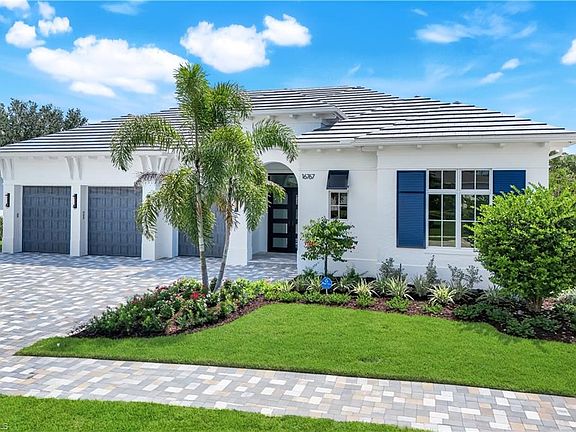Welcome to your new oasis in the heart of Naples, your single-family home nestled in an exclusive enclave of just 27 residences, offering a warm sense of community. This gated haven provides the perfect blend of privacy and convenience, featuring charming brick-paved streets and sidewalks, all enhanced by neighborhood street lighting and lush landscaping. One-story spacious great room living offering a main suite with a luxurious bathroom featuring a soaking tub, oversized shower, and separate vanities. Two guest suites, a den, and a third guest suite with a private entrance from the lanai, where your guests enjoy a spacious, quiet space with a custom bar, quartz countertop, sink, and beverage center. The home boasts high-volume ceilings that fill the space with natural light, highlighting the stunning great room, which is adorned with wood-beam ceilings, a custom bar built to include a wine cooler, a glass cabinet tower, and free-floating wood shelving with lighting, and a 74" linear fireplace. Culinary enthusiasts will revel in the superior kitchen equipped with Viking appliances, including a refrigerator, dishwasher, convection speed oven, gas range top with hood vent, all beautifully complemented by white wood cabinetry with glass doors, and quartz countertops with waterfall edges. A GE front-load washer and dryer add to the convenience of modern living. Enjoy the tranquility of a private garden setting, or entertain with ease in your outdoor spaces featuring an outdoor kitchen with a gas grill, electronic roll-down screens, a refreshing swimming pool, and spa. Seamless convenience awaits with proximity to Seed to Table, Gulf beaches, Mercato, and Southwest Florida International Airport, making every day a celebration of leisure and luxury within The Promenade's embrace. Don't miss your chance to experience the unparalleled lifestyle this estate provides in beautiful Naples.