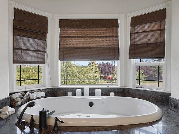 ONE OF A KIND ESTATE! This home features 5 bedrooms, an office with a closet (possible 6th bedroom), junior suite downstairs, master suite upstairs (with 2 walk-in closets, a fireplace, balcony, and jetted tub), large game room/gym, sauna, formal living and dining room, gourmet kitchen with a wine refrigerator, spacious 3 car garage, and covered space for all your off-road toys! The backyard is private and perfect for entertaining, with a pool, gazebo, and covered patio, surrounded by beautiful trees, and a custom play structure on the side of the property for the little ones to enjoy! This property has it all! one year lease, house comes with Solar panels, Renter pays for Gas and upkeep of Pool and Garden.