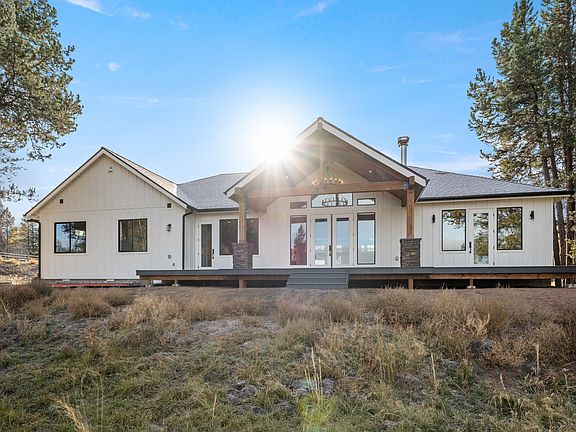 Stunning 10-acre horse property with panoramic Cascade Mountain views and 564' of river frontage. New custom-built 2,941 sq ft home features 4 bedrooms and 4 baths, vaulted ceilings, floor-to-ceiling stone fireplace. Gourmet kitchen is equipped with custom walnut cabinets, quartz countertops, professional-grade propane appliances. The primary suite offers a walk-in shower, dual shower heads, rainhead, smart bidet, coffee/tea station, and a built-in fireproof safe in the closet. Smart home features throughout. Additional highlights include a walk-in pantry, mudroom, and zoned heating separating the main living quarters from the guest suite. The Guest Suite has separate entrance, bedroom, bath, kitchenette, living room, and laundry area. Comfort is ensured with a whole-home automatic backup generator. 7,200 sq ft Red Iron Barn includes a 60x90 riding arena,30x60 enclosed area for stables, tack room, or convert into a shop. Experience the proximity to Central Oregon recreation.