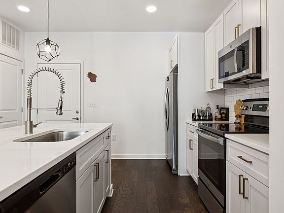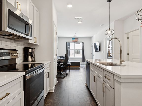 COMING SOON! Modern 1-bedroom condo in the desirable Silo West community at The Nations, offering a pool view with private balcony. The open layout features a modern kitchen with white shaker cabinets, quartz countertops, subway tile backsplash, and stainless steel appliances. The spa-like bath includes a dual vanity and walk-in shower, while a full-size washer/dryer is conveniently tucked away in the spacious walk-in closet. Enjoy finished wood and tile floors, designer lighting, and abundant natural light throughout. Includes one deeded parking spot. Community amenities include a resort-style pool, dog washing station, gas grills, clubhouse, fitness center, and sidewalks. HOA covers exterior and grounds maintenance, sewer, and trash. Just steps from popular dining, shopping, and entertainment in The Nations, and only minutes to downtown Nashville!