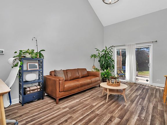 Welcome home! This stunning two-story townhome is just a five-minute drive from downtown Naperville and is move-in ready. Featuring 2 bedrooms and 1.5 bathrooms, this home boasts luxury vinyl plank flooring throughout the first floor. The living room's vaulted ceilings and skylight flood the space with natural light, while the updated kitchen shines with granite countertops, white cabinetry, a custom stone backsplash, stainless steel appliances, and pull-out shelving-no detail has been overlooked! Dual sliding glass doors lead to a private patio with no neighbors behind. Upstairs, the spacious primary bedroom offers a huge walk-in closet, along with a second bedroom, second-floor laundry for convenience, and a fully updated bathroom. The attached extra-deep one-car garage provides great storage space. Enjoy warm days by walking across the court to the pool or taking a stroll along the scenic Riverwalk. Additional parking is available nearby. Located within an award winning school district. Recent updates include a Moen touchless kitchen faucet (2022), a new skylight with a remote-controlled shade (2021), LVP flooring, a dishwasher, and a garage keypad opener (2022). Major system updates include a new AC, furnace, water heater, and humidifier (2019-2020), as well as paint and carpet (2019). Please note, this home cannot be rented. Don't miss your chance to make it yours today!