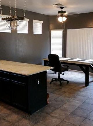This 4 bedroom, 3 bathroom home is located near Val Vista and Ray and has over 2,500 square feet. The kitchen has granite countertops and black appliances/cabinets throughout. The living room is equipped with an electric fireplace surrounded by built ins for all your electronic equipment. Separate family room, wood laminate flooring and 1 bedroom and full bathroomdownstairs. Upstairs has a loft and huge game room + 3 bedrooms including the master suite with balcony that has a modern tiled bathroom with deco faucets and vessel sinks. The backyard has artificial grass for low maintenance and an in ground trampoline, basketball hoop, barbecue with side burner/oven with granite top and soothing hot tub. Close to San Tan Mall with fabulous shopping, dining and entertainment. Welcome Home! Coming soon, call or text 480-734-0796 for details.