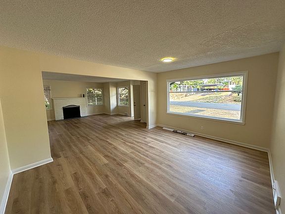The interior is bright and spacious, featuring recently updated flooring throughout for a clean, refreshed feel. A separate bonus space offers versatility for a dining room, den, or home office. Outside, the home provides ample parking, including a partially covered driveway and a large work garageideal for storage, hobbies, or project use.