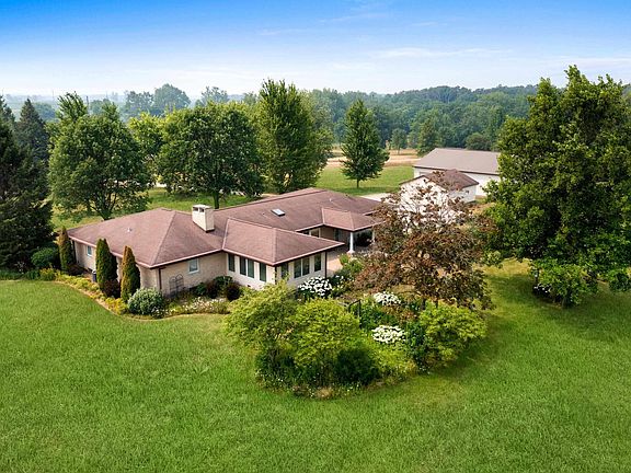 Mackinaw/Dee Mack School District! 6.91 Acres! ZONED AG-1. 48X60 Morton Outbuilding is heated, insulated & lined features 11 ft ceiling, electricity, epoxy coated poured concrete flooring, & 18x9 3" thick insulated overhead door. Plus, oversized 24x26 2 car detached garage & heated 24x24 attached 2 car garage. All brick ranch (w/vinyl siding around the 4 Season room addition) features 4 bedrooms & 3.5 baths. Beautiful updated kitchen w/ abundance of cabinetry, skylight, island, quartz countertops, double oven, pantry & informal dining area w/ bay window. Open concept living room & informal dining room. Family room boasts a brick wood burning fireplace & hardwood floors. Gorgeous views from the windows throughout the home add a sense of peace & serenity. Main floor laundry w/ washer & dryer. Unfinished basement w/ full bathroom. Large covered patio area - perfect for entertaining family & friends! Private well. Make this amazing property your next place to call home! 2 AC units (2005) Septic System (2016) Water Heater (2020) Roof (2010)