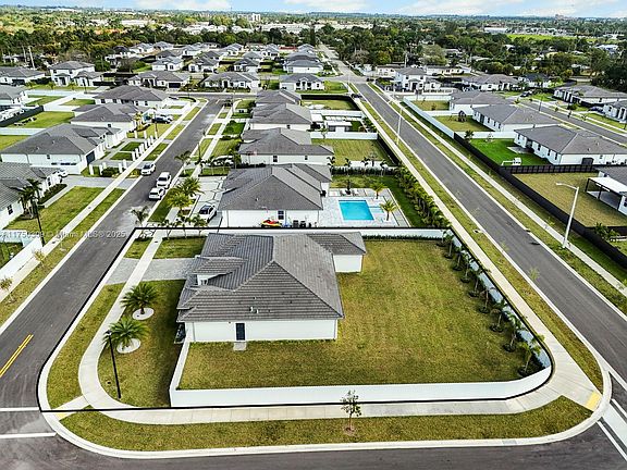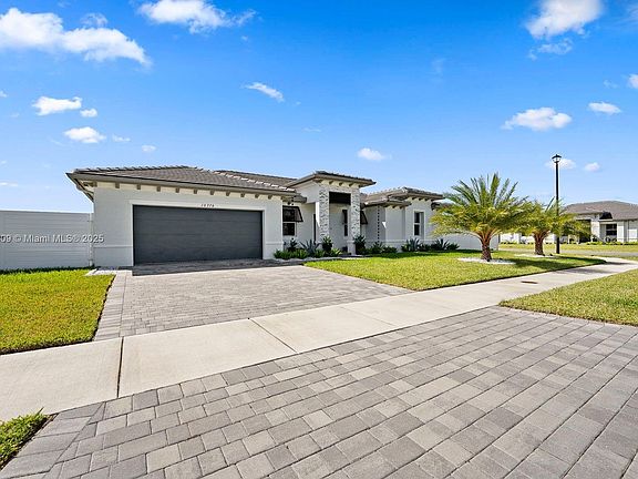 Stunning move-in ready 4 bedrooms 3 full bathrooms single family home built in 2023 in a highly desirable neighborhood Sedona Estates with no HOA restrictions. This home features an open concept, impact windows and doors, stainless steel appliances, quartz counter tops, upgraded kitchen and bathroom hardware, new interior and exterior lighting, freshly painted interior with stylish wall decor, zebra blinds & new flooring throughout, beautiful crown molding, water treatment system, newly landscaped front and backyard with a metal fence and so much more! This property sits on an oversized corner lot 13,559 sq. ft offering ample space for a boat, RV and your dream pool. Conveniently close to shopping plazas, Homestead AFB, FL turnpike and 30 minutes away from the famous Florida Keys!
