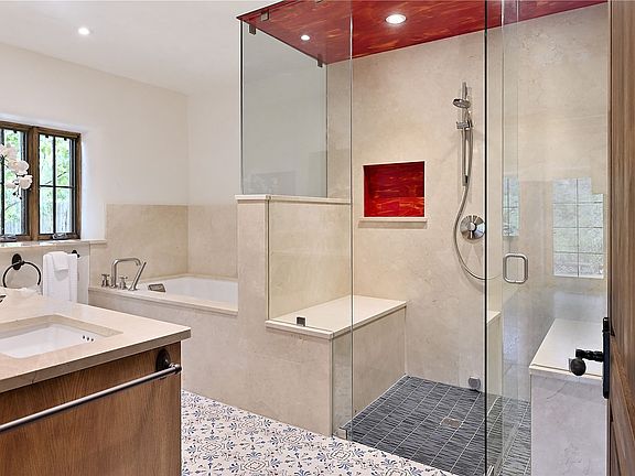 1678cerrogordo.com Welcome to a rare and enchanting retreat tucked away in the heart of Santa Fe’s Historic Eastside—where riverfront serenity, natural beauty, and timeless adobe architecture come together perfectly. Set on 2.738 acres across two separately deeded parcels, this one-of-a-kind offering includes a spacious ±4,000 sq. ft. home and an adjacent .738-acre wooded lot, offering endless possibilities for expansion, privacy, or simply room to breathe. The residence is surrounded by open meadows, mature shade and fruit trees, and lush cottonwoods, with the Santa Fe River gracefully lining the southern edge and the acequia flowing beside the home, adding a soothing soundtrack to this natural sanctuary. Inside, the home features three bedrooms, each with en-suite baths, including a primary suite with a steam sauna, a gourmet kitchen, and wood-burning fireplaces on both levels. The open-concept floor plan is filled with natural light and offers ample wall space—perfect for showcasing art. The upper level can serve as a luxurious primary suite or private guest quarters, complete with its own living and dining spaces, a grand arched picture window, and balcony with views of Picacho Peak in the Sangre de Cristo foothills. Outside, you'll discover a landscape alive with native flora, wildflowers, and birdsong. The adjacent .738-acre lot is a canvas for your imagination—build a future guesthouse, artist studio, or keep it as a peaceful spot to garden, paint, or simply unwind. Direct access to National Forest trails lies just outside the garden gate, yet you're only minutes from Canyon Road and the historic Santa Fe Plaza—a rare blend of seclusion and accessibility. Opportunities to own a riverfront property in Santa Fe are incredibly rare. This is more than a home—it’s a retreat, a sanctuary, and an extraordinary chance to own a truly special piece of Santa Fe.