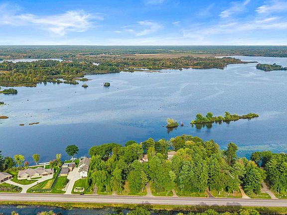 Welcome to the River Cottage, custom built in 2017 and flaunting gorgeous WI River water views and dramatic interior architecture. Set on 0.56-acres with 74 ft of waterfront, all just 5 minutes from Downtown Stevens Point, the convenient location offers a swift commute along with easy accessibility to boat landings and eateries. Step into the 1600 SF main level and admire the open concept layout and soaring ceilings. Focused on water views, the eat-in kitchen and living room are designed with comfort and style in mind. The large kitchen island and abundance of prep space offer functionality for everyday living. Three sliding glass doors from the main gathering space entice you outdoors where you can relax under the covered porch and enjoy a second woodburning fireplace, large deck with panoramic views, and separate outdoor dining and sitting area. The sprawling primary bedroom and ensuite are custom designed and offer beautiful water viewing. The main floor also includes a second bedroom, second full bathroom, and combo laundry and utility room. The loft area can be utilized