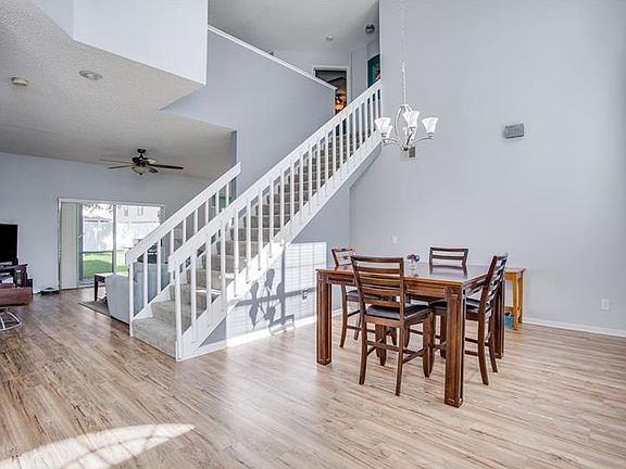 WOW! Incredible value and opportunity with this gorgeous 4 bed/2.5 bath home that has seen some impressive upgrades. Terrific curb appeal with beautiful landscaping sets the tone for this 2-story gem. As you enter the home you are presented with the grand foyer which is flanked by the living room and dining room, which showcases the gorgeous upgraded wood floors and 2-story ceiling that makes this living areas feel even more spacious. Step thru to the open and upgraded kitchen, featuring newer stainless appliances, custom cabinetry with accented see-thru doors and designer backsplash.The kitchen opens to the family room and dinette, making it ideal to entertain guests or just be with the family. A utility room is just off the kitchen and provides a basin sink along with full sized machines. The downstairs den has been converted into a bedroom with sliding glass door access to the backyard. Up the stairs you are greeted by a loft space which would make a great playroom, study or tv room. PLUS it has sliding door access to the HUGE 2nd story covered balcony! The master bedroom offers plenty of space for a king set and features a walk-in closet that can easily accommodate his and her's wardrobe. A garden tub, separate glassed shower and dual sinks can be found in the master bath. 2 more generously sized bedrooms and a full bathroom complete the upstairs. Out back, you are treated to a covered patio and SO MUCH fenced-in yard space! New roof installed in 2014. Come see why this one won't be around for long!