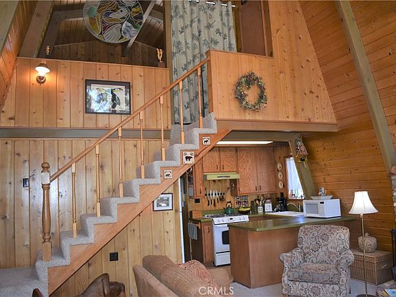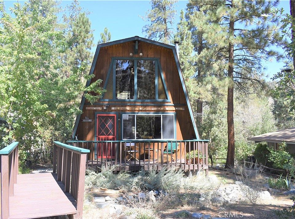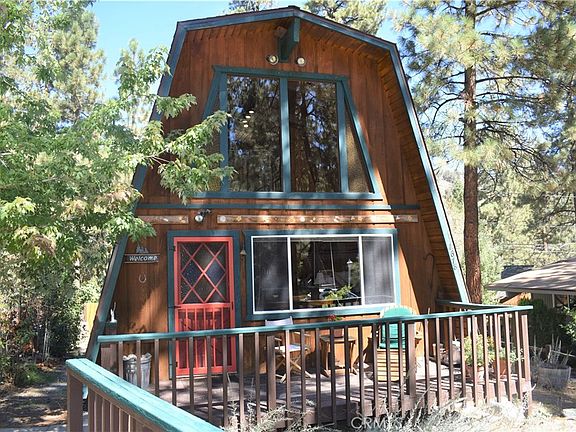 WELCOME HOME TO YOUR GAMBREL CHALET IN THE MOUNTAINS OF WRIGHTWOOD! Perfectly located in the heart of picturesque Wrightwood sits this 2 bedroom, 1 1/2 bathroom gem nestled between tall majestic pines with soaring windows, lots of charm and pride of ownership throughout! Situated just a few blocks from downtown Wrightwoood and the Country club, this property is perfect for the weekend get away or the intrepid adventurer looking to get away from the hustle and bustle of city life. Inside, a beautiful brick hearth with dutch WOOD BURNING STOVE for those chilly nights warmly greets you! Tall 20 foot ceilings with knotty pine tongue and groove walls with large windows which let in lots of sun no matter the season and exudes Mountain Charm. Just off the living room is the cute, well kept kitchen with vintage counters and wood cabinets. 2 nice sized bedrooms, one downstairs and one upstairs are tidy and cozy, and a full bathroom downstairs and 1/2 bath upstairs are super convenient! Lots of fun details like wood beams that span the walls and ceilings, extra storage in the living room and carpeted stairs and indoor laundry. Out back, a large deck is perfect for relaxing, entertaining, star gazing or the Summer time BBQ. A storage shed is handy to store the necessary tools for mountain living! The front porch offers relaxing options too for that morning cup of coffee! Priced right and wont last so hurry before its gone!