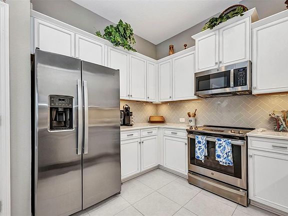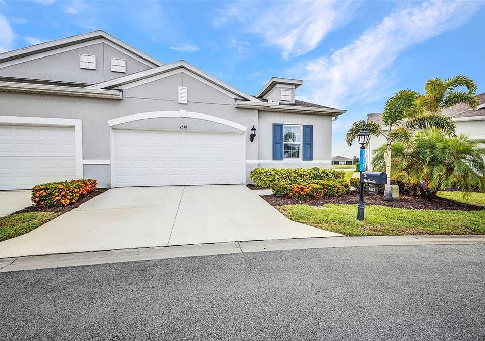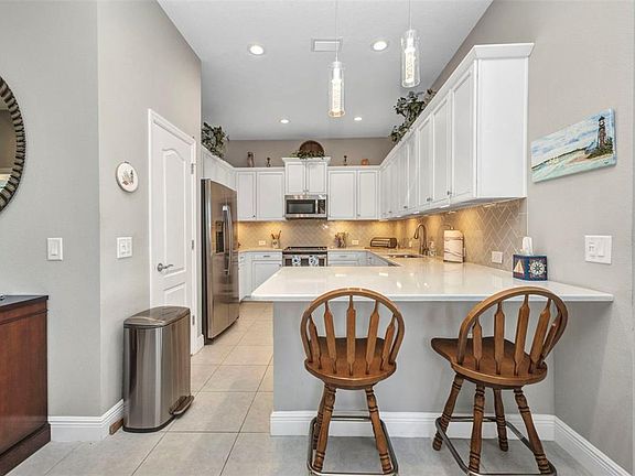Looking for sunshine, serenity, and resort-style amenities? This beautifully maintained, partially furnished, 2-bedroom +a den, 2-bath villa in the highly desirable Kings Gate community in Port Charlotte offers easy Florida living in an active 55+ neighborhood—all in a no-flood zone and perfectly situated on a peaceful lake. Step inside to a light-filled, open layout featuring 10-foot ceilings, tile flooring throughout, and impact-rated windows and sliding glass doors for storm protection and energy efficiency. For even greater peace of mind, the seller has also added Kevlar roll-down hurricane screens for the patio. The kitchen is a delight, equipped with quartz countertops, stainless steel appliances, and a functional layout that’s great for both casual meals and entertaining. Enjoy your morning coffee or wind down in the evening on the enclosed back patio while taking in beautiful lake views—your own private retreat. This home has so many upgrades featuring all previously described as well as the water filtration system in the kitchen, custom living room drapes and valances, as well as epoxy- flooring throughout the garage. Kings Gate offers a truly resort-style lifestyle with an impressive lineup of amenities, including a heated pool, tennis, bocce ball, racquetball. In addition to the amazing amenities, take full advantage of the PUBLIC executive golf course (with 9- and 18-hole options), and a vibrant clubhouse full of activities and social events. It's a golf cart-friendly community with close access to shopping, dining, and everything you need. If you’re dreaming of low-maintenance living in a fun, friendly, and active 55+ community, this villa checks all the boxes!