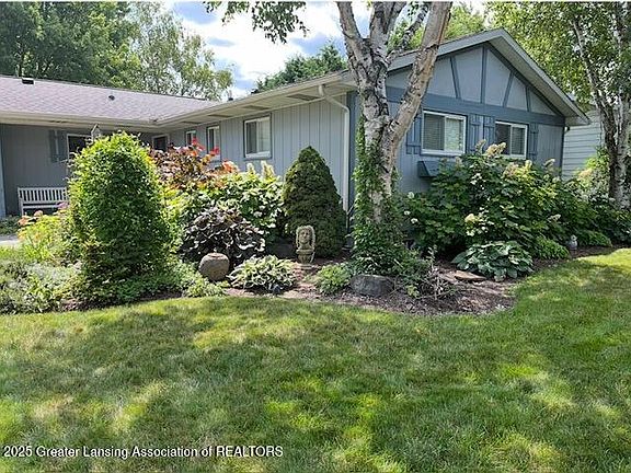 Spacious 3 BR, 2.5 Bath 1462' ranch style home. The large kitchen has an eating area and there is also a formal dining room! The 3 Bedrooms, 2 Full Baths and a living room (with a gas fireplace) complete the first floor. The basement, also 1462', is partially finished and has many rooms - enough for a rec room, an office, a laundry area in the ½ Bath and lots and lots of storage or extra rooms. The garage is oversized with 2 stalls and extra room to store things. There is also a shed. The covered deck overlooks the pond (owned and maintained by Ingham County) and many beautiful perennials that bloom throughout the spring, summer and fall. It is not unusual to see many forms of wildlife throughout the large backyard. The owner says what she likes most about the house is how quiet it is and the gorgeous view of the backyard. NOTES: There is a well for irrigation only and is exempt from being inspected by Ingham County. The claw foot tub in the basement bathroom is not hooked up to a drain or the faucets. RESERVED: Some Perennials, the antique medicine cabinet and light fixture in the bathroom.