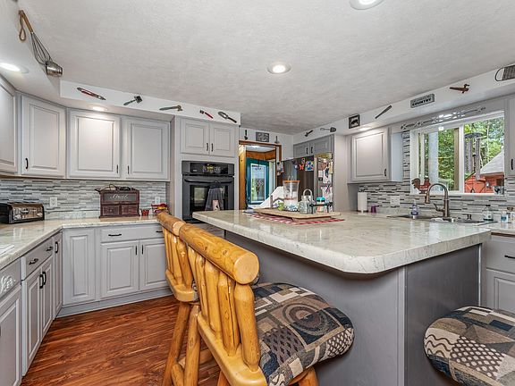 Discover your lakeside family retreat on Tambling Lake! This inviting two-bedroom home features a spacious primary bedroom with an ensuite, an additional bedroom, and a bathroom. The large open living room boasts stunning water views and a cozy gas fireplace, perfect for relaxation. The modern kitchen offers ample space for culinary adventures, while the main floor laundry adds convenience. Step outside to the wide sun deck and immerse yourself in nature. Additional family visiting? No problem! They can enjoy the overflow space in the one-bedroom, half-bath apartment above the detached heated three-car garage. There's plenty of room for recreational vehicles in the 40x40 pole building (plumbed for a bathroom), which includes a new 12x30 four-season room ( hydronic in floor heat ) addition, ideal for unwinding and taking in the surroundings. Nestled on 1.47 acres with 200 feet of frontage, this property is a serene haven for all seasons.