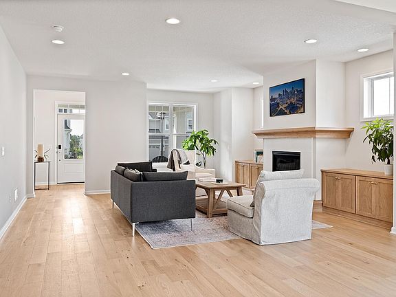 The main level boasts a fabulous open layout with rich wood floors, custom cabinetry, quartz countertops, and a striking gas fireplace. A versatile main-floor office (or walk-in pantry), mudroom with a spacious closet, and seamless flow to the private, fenced backyard make it perfect for today’s living.