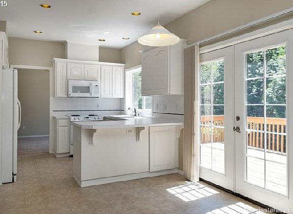 Move in ready, backs to green space and has new interior paint, new carpet and newer deck. 4 bedrooms & 3 full bathrooms. Bedroom on main level could be a den or office. Great room with French doors to deck. Stairs from deck to backyard for easy access to garden. Master suite w/ walk in closet. New roof soon.