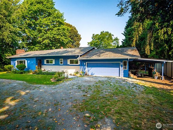 Beautifully remodeled rambler on 1 acre just minutes from downtown Mount Vernon! With a large living room feat wood fireplace, 4 bedrooms OR 3 bedrooms plus an office, two updated bathrooms w/ heated floors, large 2 car garage (plus carport!), and a sunroom off the covered back patio overlooking the level open yard. Main area has gorgeous acacia wood floors and the updated kitchen has dual gas/electric double Wolf stove & gas range, newer appliances, and lots of storage including a pantry. Trex deck off the dining room with views of your garden, fruit trees, and fenced dog run/chicken coop. Laundry w/ deep sink & stairs to the basement w/ storage space. Move in ready & just outside town, make this your hobby farm or possibly build an ADU!