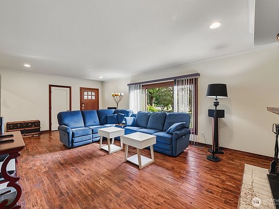 Wood fireplaceUpdated kitchenGorgeous acacia wood floorsLevel open yard