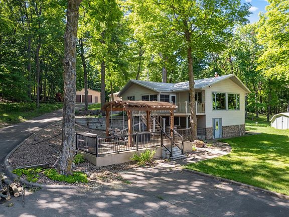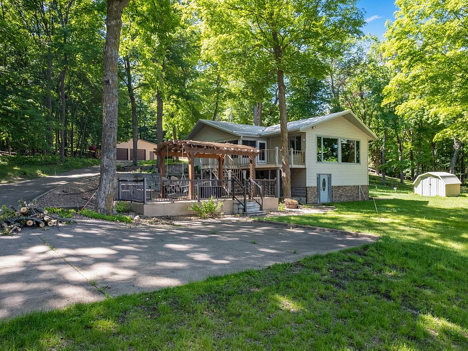 Situated on Eagle Lake, one of the clearest lakes in the Brainerd lakes area, offering great fishing and no public access with very little fishing pressure! This gorgeous retreat w/200 ft of level shoreline on a beautiful 6 acre lot offers 2 BR's (lg flex rm is now 3rd bedrm), 2 BA's, and a walk-out with expansive lake views. LR brick gas F/P, T&G cedar, remodeled kitchen w/solid oak cabinetry, convection oven, hard surface countertops, and flrg. 3-car htg & insulated detached garage, 32x40 pole bldg, 24x16 raised concrete patio, deck seating, 3 season porch, and ample space for guest parking. Extended cement driveway makes it easy to launch watercraft at your own lakefront. Easy maintenance Leafguard gutters, vinyl siding & metal roofs on the home, garage, pole building, garden shed & lakeside shed! The private drive is lined with mature pines, white oaks, maple, hazelnut and apple trees.