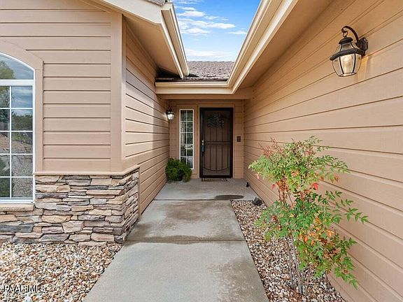 See the 3D floorplan! Former Crystal Creek model home in one of the best locations in Prescott! Close to everything. New roof, new paint inside and out! This house shows like a new home. Perfect location! Hospital 5 minutes, Restaurants, Drug Stores, Walmart & Natural Grocers. Yet, you feel like you are secluded away from it all. 3 spacious bedrooms, two of them have exit doors to patios. Grand, stone, gas Fireplace in the great room, large dining area, and handy island kitchen with granite tile counters, nice pantry and extra serving area. HVAC New last year along with a new water heater. Current owner replaced all window coverings and all appliances! A new metal patio cover was added along with a block side wall with a gate. Home has NEW upscale tile roof and underlayment, new glass doors from great room & Primary as well as 2 new Security doors! Very well maintained home and you can see the pride of ownership throughout. NEW Roof completed 8/13, so it's ready to see now. Owner packed and ready to go! It's practically move-in ready! Some furniture available to purchase outside of escrow.