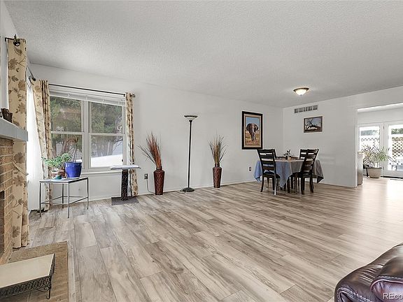 Located on a spacious corner lot in the established and friendly Mission Viejo neighborhood, this beautifully updated 4-bedroom, 3-bath ranch home offers comfort, charm, and thoughtful updates. Inside, luxury vinyl plank flooring flows throughout the main level, creating a clean, cohesive look that’s both stylish and durable. The open-concept great room and dining area form one spacious, inviting room anchored by a cozy gas fireplace—perfect for gathering, relaxing, or entertaining with ease. Just off this central space, the updated kitchen features designer concrete countertops, a stylish tile backsplash, and refreshed cabinetry that adds character and warmth. Elegant single-hinged French doors open from the kitchen to a private backyard retreat with a pergola-covered patio, mature trees, and a fully fenced yard—perfect for outdoor dining, play, or peaceful evenings under the stars. Down the hall, you’ll find a full bath and two generously sized secondary bedrooms, while the primary suite offers a quiet retreat with a large closet and private ¾ bath. Downstairs, the expansive finished basement opens up endless possibilities, with a huge rec room ready to serve as a second living area, game room, workout space, media room—or all of the above. A fourth bedroom and additional ¾ bath provide great flexibility for guests, teens, or multi-generational living. Additional updates include new exterior and basement paint, new basement carpet, a brand-new sewer line, and newly installed low-maintenance xeriscaping in the front yard. All of this is located in the coveted Cherry Creek School District and just a short distance from Mission Viejo Park, the local library, tennis and pickleball courts, and convenient shopping and dining options. This thoughtfully updated home checks all the boxes for style, function, and location—come see for yourself!