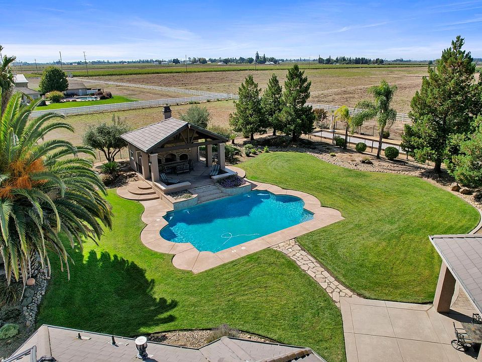 An exceptional opportunity to own a stunning custom-built estate set on 3.83 acres, nearby vineyards and sweeping sunset views to the west, enjoy evenings by the outdoor fireplace & sunset views. Built in 2004 and offering approximately 3,271 sq. ft. of well-designed living space blending comfort, craftsmanship, and California outdoor living at its best. A 40-panel solar PV system provides energy efficiency, while cross fencing separates two pasture areas, or maybe room for an RV or shop? The expansive backyard is a true entertainer's paradise - featuring a deluxe outdoor kitchen and dining area with concrete slab countertops, built-in BBQ, refrigerator, ice maker, warming drawer, beverage cooler, with abundant storage. Bocce Ball anyone? The covered upper patio with vaulted ceilings, accent lighting, and a fireplace overlooks the sparkling pool and sauna below. A full outdoor bathroom and storage room complete this thoughtfully designed entertainment retreat. Inside, prior updates include a paint, appliances, flooring, newer HVAC system and water heater, ensuring modern comfort throughout. A rare combination of privacy, views, and resort-style amenities, this exceptional country estate captures the best of luxury and lifestyle just minutes from town.