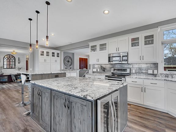 Start living the lake life you have always dreamed of! Beautiful level lot(1.01 acres) with 105ft of shoreline on Krays Lake. You will love the location of this property just minutes from town and its central location on the Horseshoe Chain of Lakes. Upstairs features open concept - Kitchen, dining, and family room with expansive windows. Beautiful custom cabinets, granite countertops, impressive center island to gather around + ss appliances w/ beverage fridge. 2 bedrooms upstairs, + bathroom with tiled walk-in shower. Lower level with additional bedroom, + potential for a 4th bedroom(needs egress), ¾ bath, family room + loads of storage space available. Extra deep 4-car garage for all your toys. Professionally landscaped lakeside with outdoor kitchen. Perfect location for the sunset! Gather around the firepit or kick back on the deck which is wired for a hot tub. Roof new 2019. Horseshoe chain of lakes offers 15 connected lakes with miles of lakeshore to explore and enjoy!