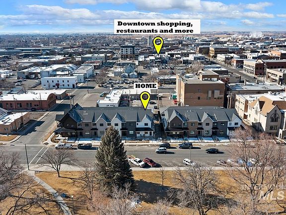 Seller has accepted a job out of the area providing a second chance for buyers to live in this unique walkable location. Historic styling with modern conveniences, this townhome is located in the heart of Downtown Twin Falls and is one of the architecturally designed homes in the project that was sold out almost immediately. Three large bedrooms, each with their own walk-in closet and en suite. The primary suite is located on the main floor. Surprisingly large (33’ x 22.5’) garage. The construction is so new that the landscaping will be completed by the builder this spring.