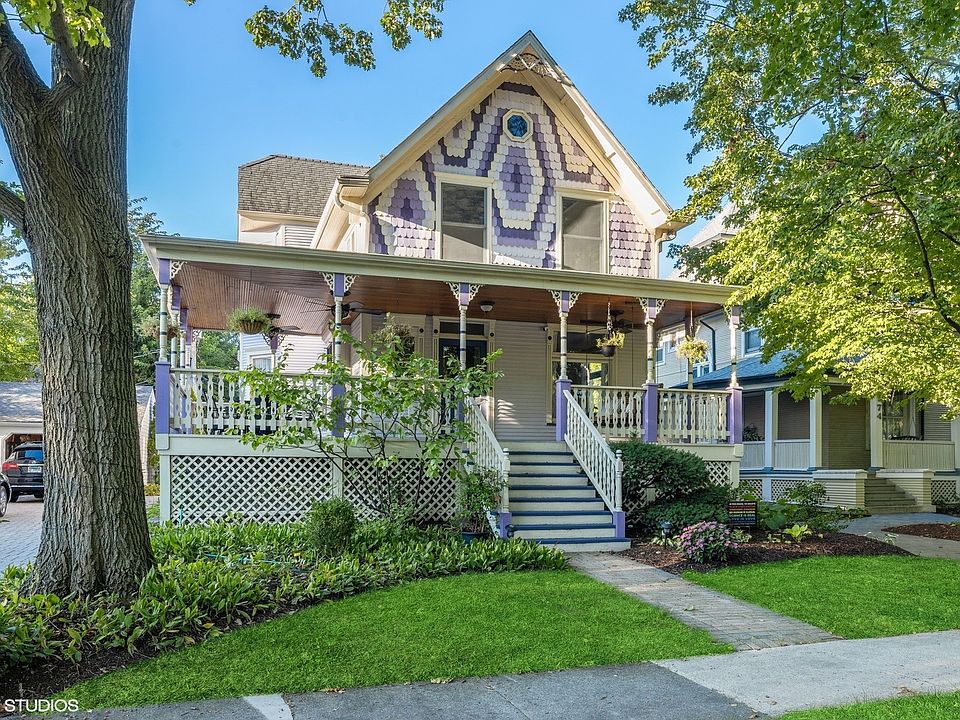 Victorian charm meets modern paradise. Built in 1888 with original target moldings, hardwood floors, antique fixtures, this home has been lovingly maintained by relatively few owners since it was built (including a famous, published poet). The home has been renovated to include a french drainage system for the yard, solar panels, hookup for EV, a beautiful primary bedroom and bathroom including heated floors in the bathroom, a large walk in closet, fireplace, skylight in the bedroom and in the oversized shower and steam room, and a large balcony (designed ready for a hot tub) overlooking the yard. Large basement provides entertainment space with custom lighting, half bath, refrigerator room, sink, microwave, and plenty of storage. The kitchen contains 3 pantries, Wolf stove, SubZero refrigerator/ freezer, and granite counters. There are custom built-ins throughout the home. Washer and dryer are just outside the primary suite for maximum convenience. At the end of the block is one of the many Olmsted designed parks and a short walk to the highly rated Riverside-Brookfield schools. The community is a dream for walkers, cyclists, kayakers, and birders. Short walk to Metra train.
